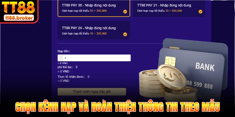 Chọn kênh nạp và hoàn thiện thông tin theo mẫu