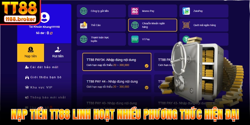 Nạp tiền TT88 linh hoạt nhiều phương thức hiện đại